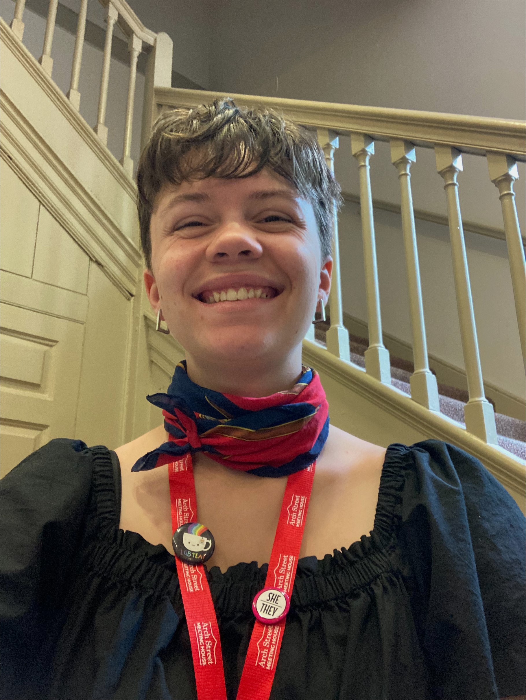 JJ Miller is interning at the Historic Arch Street Meeting House in Philadelphia, PA. As a history major and a quaker, Miller found this internship to be the perfect fit. Their tasks include visitor engagement, collections inventory and developing interpretive programs. Miller independently secured this internship by contacting the executive director, Sean Connolly. They appreciate the opportunity to apply theoretical knowledge from their coursework in a real-world setting. Miller’s responsibilities also include maintaining the site, assisting with public programs and handling historic textiles. At the Historic Arch Streeting Meeting House, Miller hopes to learn more about conveying complex historical narratives and the intricacies of museum operations.