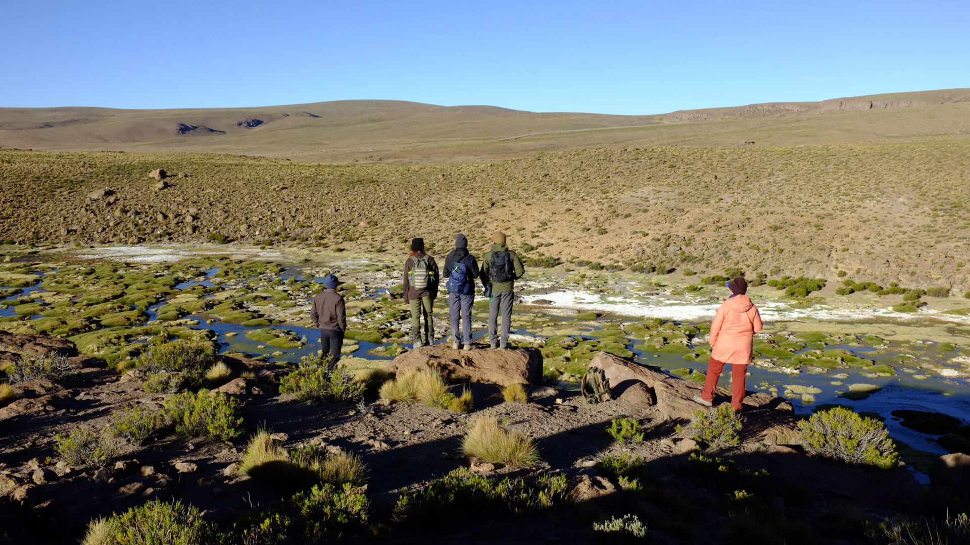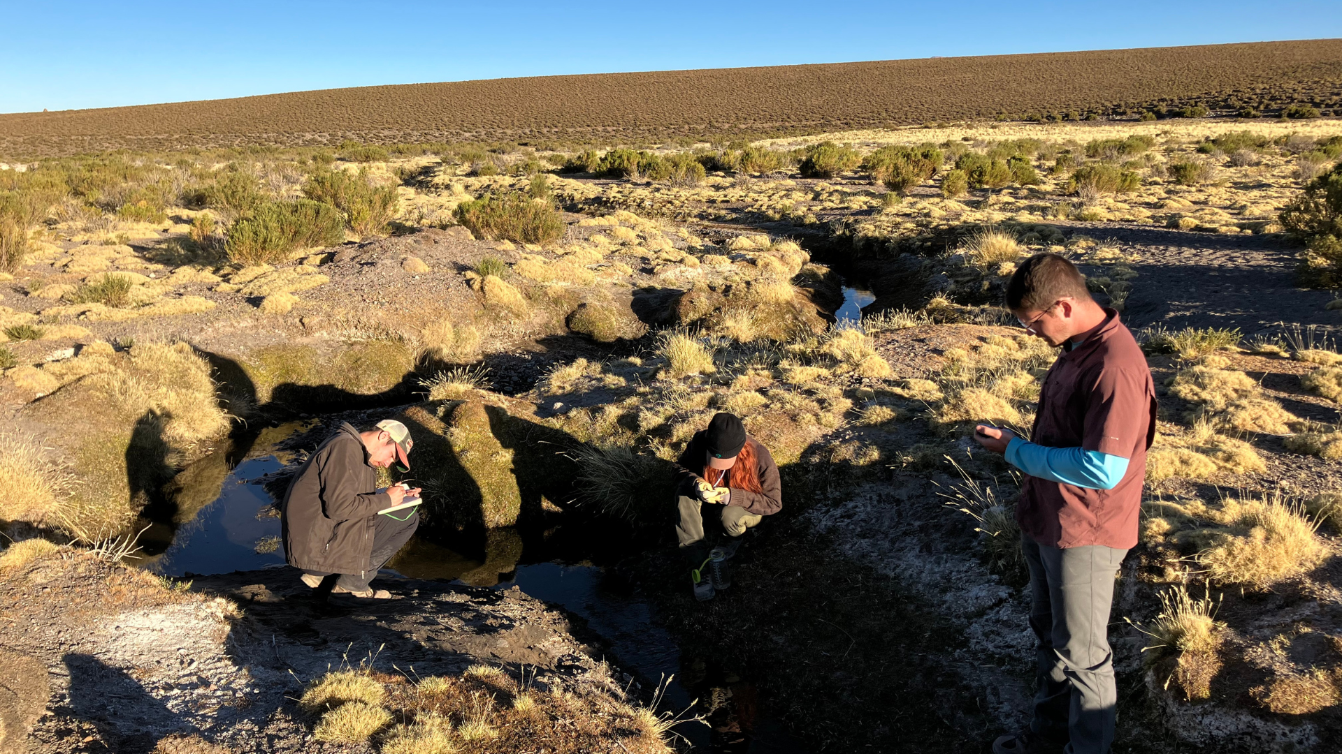 - Students taking water quality samples at a altiplano wetland.