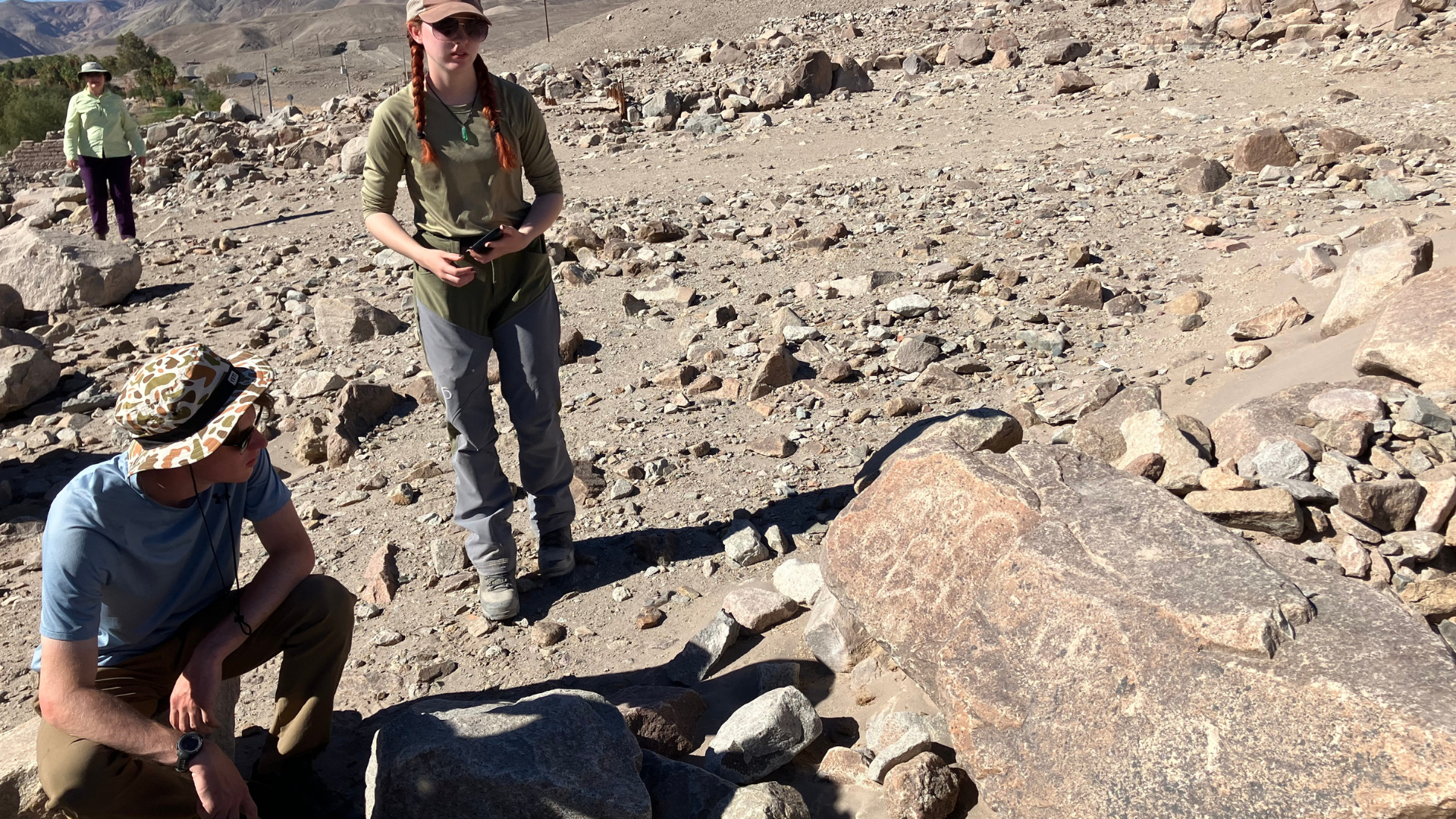 - Students examining prehistoric petroglyphs in the Tarapaca valley. Petroglyphs are a type of prehistoric rock art.